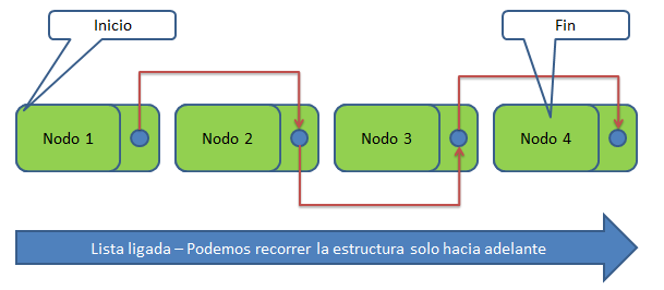 Una lista simplemente enlazada o simplemente ligada es una estructura de datos lineal que se utiliza en programación. A diferencia de los arrays, en una lista enlazada no accedemos a los datos mediante un índice. En lugar de eso, los elementos están enlazados mediante punteros.