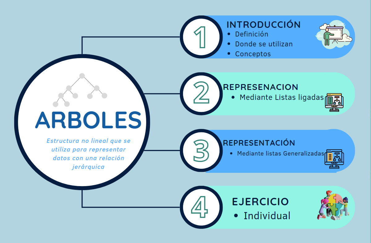 La definición de árboles parte del concepto de árbol general que no incluye el árbol sin ningún registro. Además se definen los conceptos básicos asociados a los árboles.