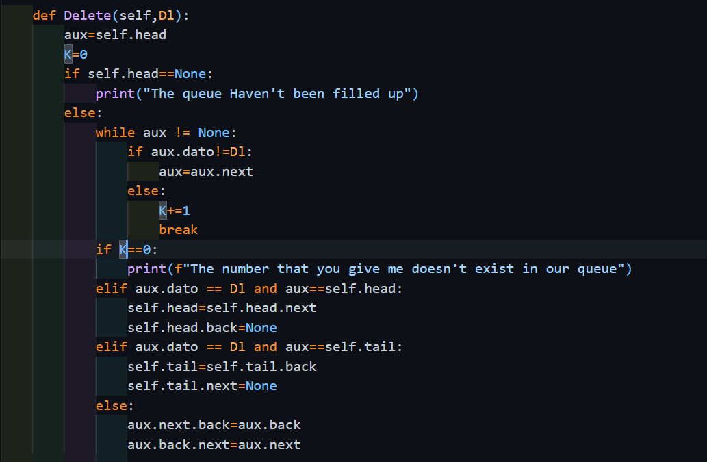 En este algoritmo estaremos borrando un numero en especifico en una lista de nodos doblemente ligada.